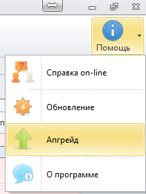 1) В главном меню программы нажать кнопку "Помощь", а затем в меню выбрать "Апгрейд".