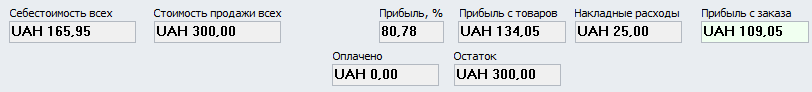 В нижней части окна отображается итоговая информация по заказу: