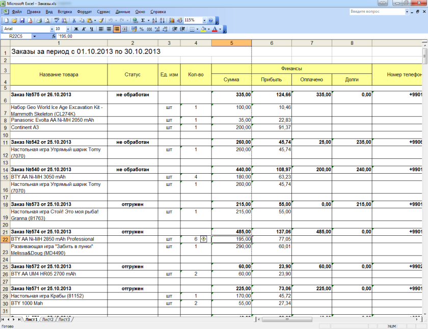 Вы можете экспортировать список заказов в Excell в удобном для просмотра виде, это может понадобится, например, если возникнет необходимость иметь список заказов на мобильном устройстве или же для передачи списка заказов курьеру.