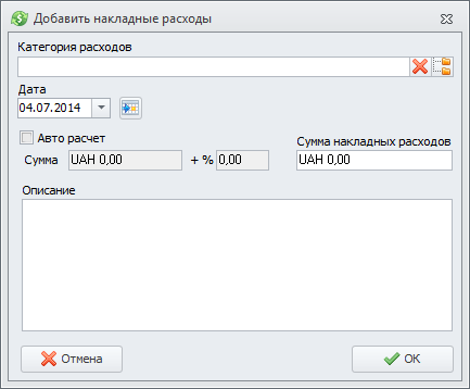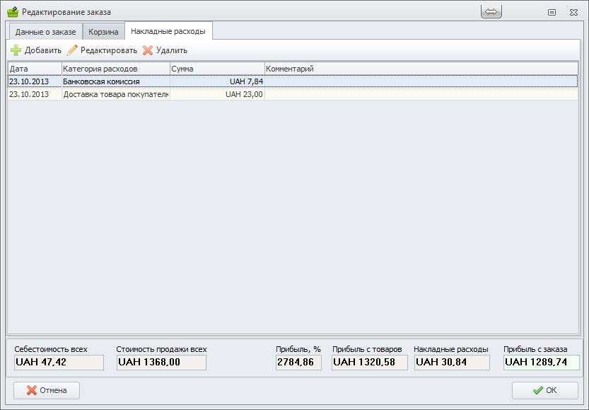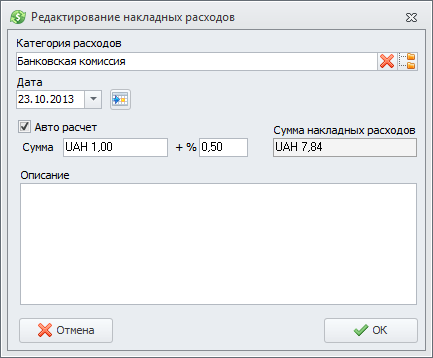 , после чего появится форма редактирования накладных расходов, аналогичная форме добавления накладных расходов. Далее процесс ничем не отличается от описанного выше.