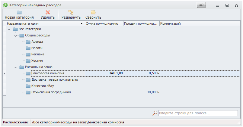 - нажмите, что бы редактировать выбранную запись о накладных расходах. Тоже действия происходит при двойном клике по записи;