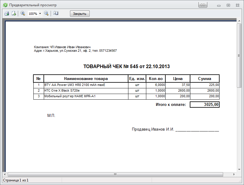 . После этого появится окно предварительного просмотра чека