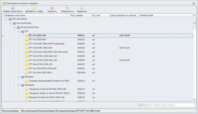 - нажмите, для того чтобы создать новый товар. Товар будет создан в той категории, которая сейчас выбрана в списке;