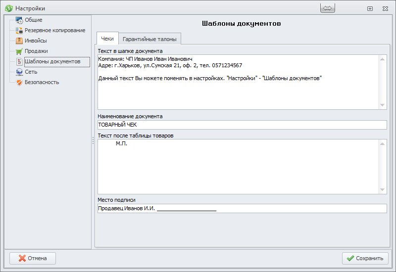 Шаблон чека