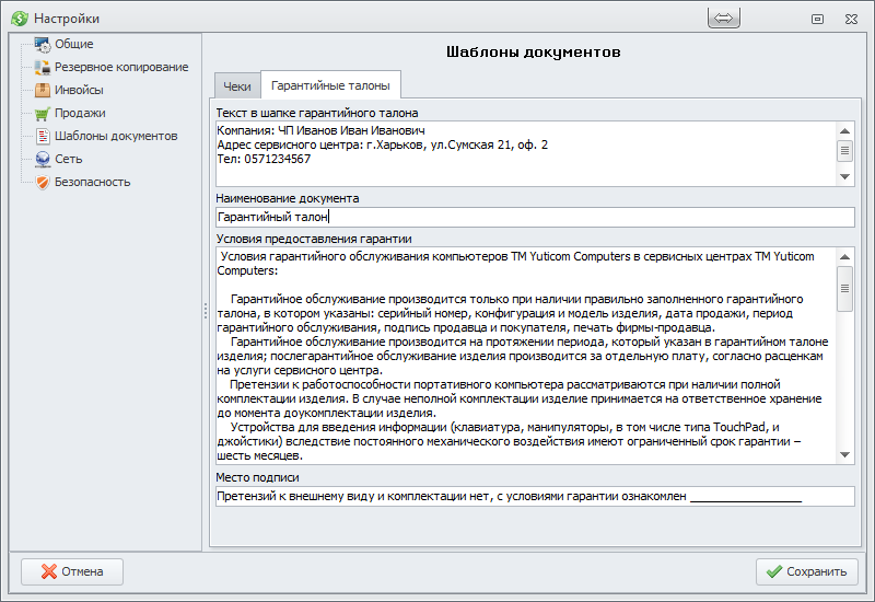 Шаблон гарантийного талона
