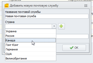 Обязательным являются лишь заполнение поля Название почтовой службы и Страна. Страну можно выбрать из выпадающего списка стран