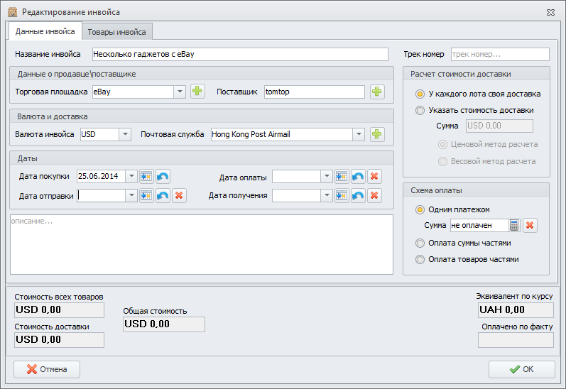 Создание инвойса рассмотрим на примере, когда мы покупаем несколько товаров у одного продавца на eBay. Хотя по сути где покупаются товары совершенно не важно.