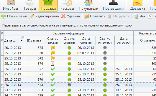 — нажмите, что бы пометить заказ как отгруженный. Дата отгрузки заказа будет установлена как текущая;