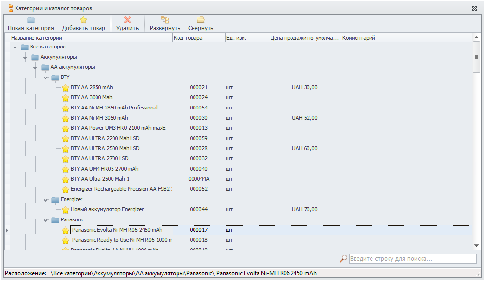 Пример поиска в каталоге товаров по фразе "BTY":