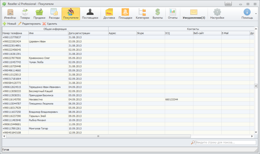Следует отметить, что нет необходимости регистрировать покупателя на этой форме перед каждым оформлением заказа. Вы можете сделать это прямо из формы формирования заказа, кроме того если вам необходимо зарегистрировать только номер телефона покупателя, то вам вовсе не нужно создавать нового покупателя,